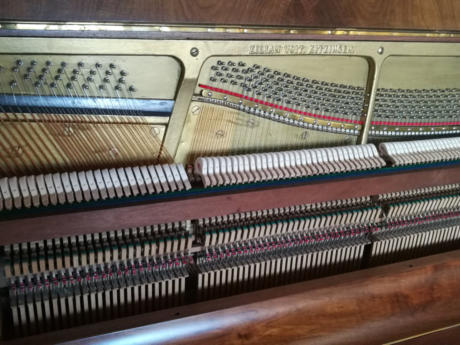 Das Instrument wurde komplett in unserer Werkstatt überholt.  Erneuert wurde u.a.: Saiten, Stimmnägel  Hammerköpfe (Abel, Germany), Bändchen, etc.