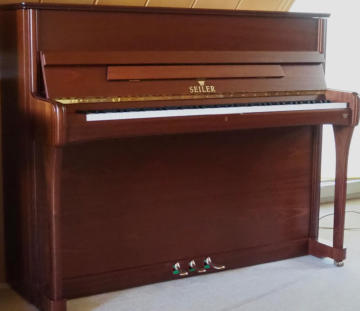 Seiler 116 Baujahr 2001 Mahagony satiniert   Barpreis: 6500.- €  Transport parterre frei Haus  im Umkreis von 30 km ab Hettstadt 1 Gratisstimmung nach 3 Monaten Das Instrument wurde in unserer Meisterwerkstatt komplett überarbeitet.  Folgende Teile wurden unter anderem technisch überholt:  - Renner-Mechanik komplett neu nach Herstellervorgaben        einreguliert - Hammerköpfe sind frisch abgezogen - klangliche Optimierung - gestimmt auf Kammerton - Stimmhaltung geprüft und gewährleistet zurück